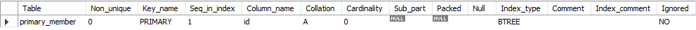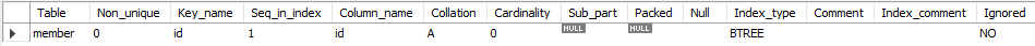 위와 같은 테이블을 생성했을 때 DB에서는 자동으로 인덱스가 2개 생성됩니다.